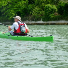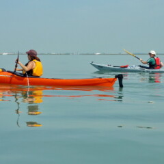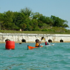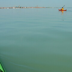 Notre voisine allemande de camping, Kirsten, nous propose de nous y accompagner, avec son Valley Aquanaut. Il fait très beau, et le vent de la veille est complètement tombé. Dans ces conditions idéales, la lagune est un miroir, pourvu que l’on reste à l’écart des chenaux.