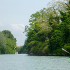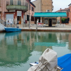 Le franchissement du chenal avec son trafic et son clapot désordonné est toujours un instant sportif et un peu tendu, mais tout le monde s’en sort très bien ! Nous goûtons à nouveau au calme des canaux. Ici, ruelles et voies d’eau sont plus larges et les maisons plus basses qu’à Venise.