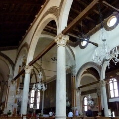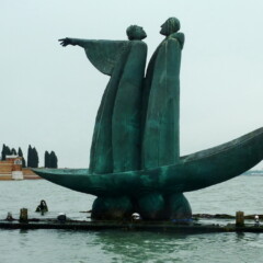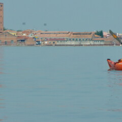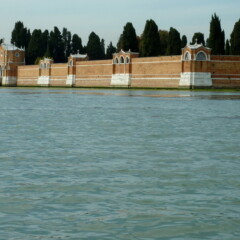 Contournement des murailles ciselées du grand cimetière San Michele, sur lequel nous ne débarquerons pas. Puis incursion de fin de journée dans Venise la première fois, avec pour spectacle l’arrivée des régates de l’America’s Cup, ou retour direct vers Vignole et le Lido la deuxième fois, avec un plan d’eau plus calme et sous une pluie fine.