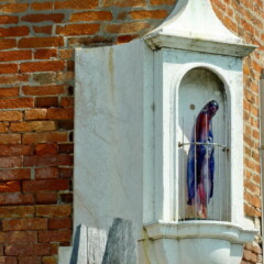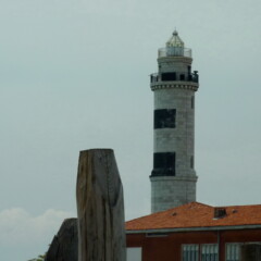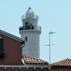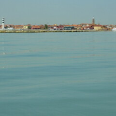 Nous passons à l’Est de l’île de Vignole pour éviter justement le trafic. Malgré quelques incertitudes de notre accompagnatrice, dont les raccourcis osés nous font caresser les haut-fonds à marée presque haute, il nous faut juste une petite heure sans se presser pour être à l’entrée du grand canal de Murano, gardée par son phare majestueux de pierres blanches barré de deux bandes noires reconnaissables de loin.