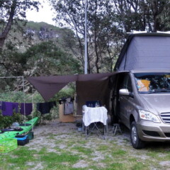 En attendant nous sommes très loin de ces considérations 🙂 Notre première étape est au camping La Sorgente, à juste quelques km de Portoferraio, sur la magnifique presqu’île d’Enfola, avec ses emplacements en terrasses qui descendent jusqu’à la mer. Nous sommes les deuxièmes occupants du jour, avec un autre camper, un VW California d’un couple suisse.