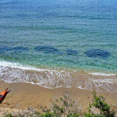 Plaisir de choisir le meilleur emplacement du camping, devant la mer, et deux des plus belles plages de l’île aux eaux turquoises, vides de tout être humain.