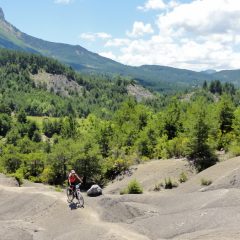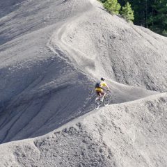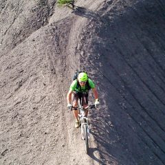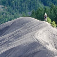 Réservées aux seuls participants du raid (et de l’enduro « pro », couru quelques semaines auparavant), ce passage réunit tous les attributs qui peuvent illustrer le terme « gazeux » ou « aérien », et fait flipper à juste titre les plus aguerris. La ligne de crête est étroite, parfois déversante, tortueuse dans les trois dimensions, et ouverte sur des pentes de terre noire voisines de 100% ! Tout autour, le panorama est juste sublime et venteux, ce qui ajoute à l’ambiance extrême du spot.