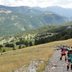 La vingtaine de filles inscrites seront donc à la peine ce premier jour, tout comme bon nombre de garçons qui ne seront pas dans les temps au départ de l’incroyable spéciale 2, au Pas de Trotte sous la cime de Chamoussillon, à 2133m, avec une arrivée 1130m plus bas à St Martin d’Entraunes, en passant par tous les étages de la végétation et tous les types de terrain. Banana (unique fille en Master 3) y va au mental, tandis que je trépigne de ne pas pouvoir l’assister dans les portages comme j’ai l’habitude de le faire en rando.