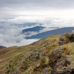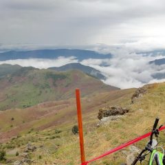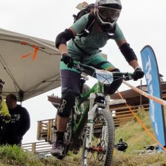 Banana le paiera cher en subissant le beau tracé dans les terres rouges de bout en bout, tandis que de mon côté, après une première moitié poussive à gérer plus ou moins bien les dévers gauches sur l’herbe mouillée ou la terre fuyante, je retrouve le plaisir et le pilotage dans la deuxième moitié de la descente, alors que les nuages fantomatiques se déchirent progressivement sur le Cians.