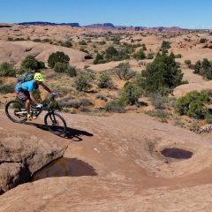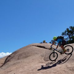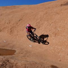 C’est bien simple, ça n’arrête pas ! Une infinie succession de creux, de bosses, de dévers, de walls montants ou descendants, de half-pipes, de passages en “bac à sable”, un immense skate parc naturel avec en plus toutes sortes de trajectoires possibles en dehors des “clous”, ces tirets blancs peints à même la roche et qui balisent l’ensemble du parcours.
