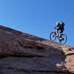 Les traces noires dans les murs ne sont dues qu’aux bikers débutants ou craintifs. Tel le gecko, vous êtes scotchés au rocher, et ça c’est fun.