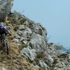 Pas de répit, des changements de rythme et de terrain permanents. Passer du sous-bois en terre meuble avec du grip au champ de mines de cailloux plantés (et les nombreuses crevaisons qui l’accompagnent), à la dalle en dévers, aux petits murs, gaps et autres marches à avaler, avec de courts portages lorsque le niveau technique ne suffit plus.