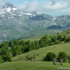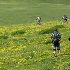 Il faut dire que rouler à la mi-juin dans les alpages fleuris de la petite station de la Tinée est un plaisir qui se déguste. J’écrivais d’ailleurs déjà l’année passée : « Devant nous, tout autour de nous, c’est un véritable gazon anglais vert fluo, parsemé de fleurs jaunes ou mauves, surmonté de collines et de montagnes zébrées de névés blancs persistants, qui se détachent sur un fond bleu presque artificiel. On va rouler dans un véritable diorama grandeur nature ! Magique, envoutant… »