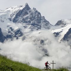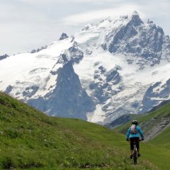 Avant d'aller se fourvoyer sur les remontées mécanisées et les descentes bulldozées des stations des 2 Alpes et de l'Alpe d'Huez en vue de la Megavalanche, tout vététiste de montagne qui se respecte ne peut manquer de rouler sur l'un des plus beaux parcours du secteur de la Grave et sa "reine" Meije.