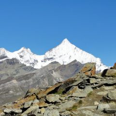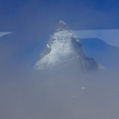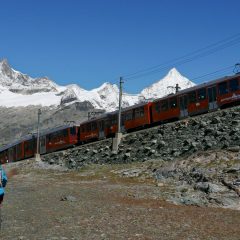 La crémaillère électrique continue de nous hisser au-dessus de cette mer de nuages, et le rideau peut enfin s’ouvrir en grand, sur une constellation de sommets de plus de 4000m, au milieu desquels se détache la montagne reine, comme sur mes chocolats d’enfance.