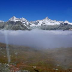 Après la journée très maussade de la veille, la météo insistait sur le retour du soleil dans la matinée, mais les premières stations au-dessus de la richissime Zermatt restent encore sous leur couverture de coton gris-blanc.